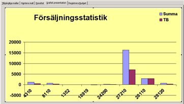 Den post (huvudgrupp) som är markerad, visar dess tillhörande undergrupper grafiskt. Det grafiska objektet visas med hjälp av en officekomponent, vilket ger möjlighet att kopiera och klistra in objektet i Excel, Word eller PowerPoint och där vidareförädla presentationen. Exempelvis om man vill ändra diagramtyp till kurva.