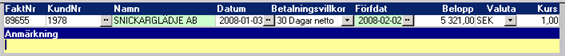 Ange fakturanummer (om detta fakturanummer redan finns får man en varning och annat nummer måste anges).