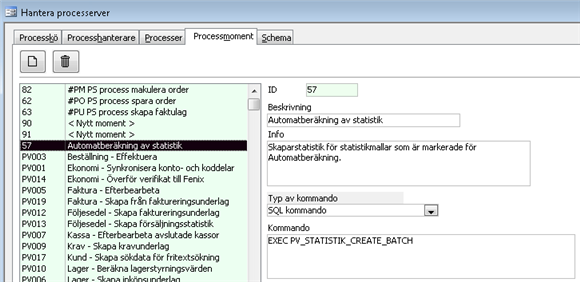 Man väljer i respektive lista vilken statistikmall man vill utgå ifrån och man kan välja alla egna och allmänna statistikmallar som är grupperade som huvudgrupp per den listtyp man använder. Det sker ingen beräkning i samband med att man väljer en statistikmall, så för att statistiken alltid ska vara aktuell i listorna rekommenderar vi att man sätter upp ett batchjobb som uppdaterar statistiken varje natt.