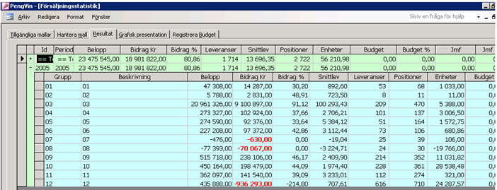 Målsättningen med PENGVIN Statistik är att man skall ha full kontroll över alla affärstransaktioner, både i samband med försäljning och inköp.