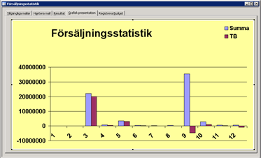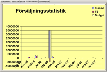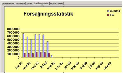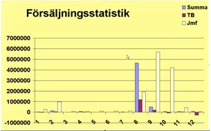 Nu har vi skapat en jämförelsemall som tydligt visar vilka månader som försäljningen är hetast. Värdena går att exportera till Excel i ett kalkylblad, den grafiska presentationen kan man spara till Word och får då med sig underliggande datainsamling. Dessa bägge olika typer av objekt visar status vid ett givet ögonblick och kan ligga till grund för senare analys eller om man vill skapa en budget.