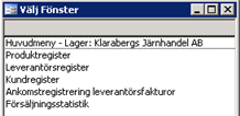 I listgeneratorn för kund, produkt och leverantör är det möjligt att hämta fram data från statistikregister. Man kan hämta info från statistikmallar med motsvarande grundregistrets id som grupperingsbegrepp huvudgrupp.