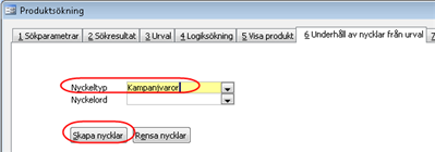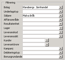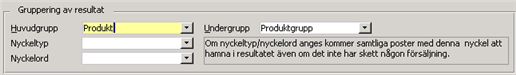 Dessutom finns möjligheten att statistiken endast skall omfatta kunder/produkter/leverantörer som har angivna nycklar eller kombinationen nyckel och nyckelord.