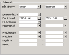 Ange ett intervall. I exemplet anges ett intervall baserat på leveransdatum. Eftersom det i exemplet valts att se trenden per månad kommer insamlingen ske per månad oavsett år.