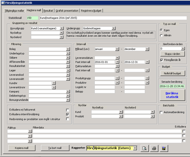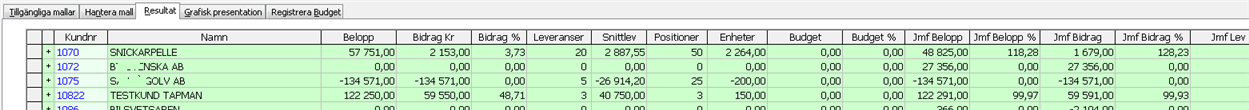 Resultatet visar samtliga kunder som handlat något under 2016. De kunder som inte handlat visas inte då ingen kundnyckel har angetts i statistikmallen.