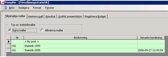 Välja en statistikmall (i exemplet skapar jag Försäljningsstatistik total år 2002) som grund