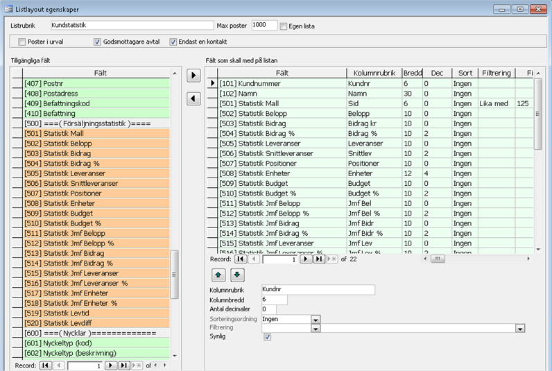 I och med att det finns möjligheter att skapa leverantörslistor med statistik kan man skapa de listor man vill ha och har då möjlighet att få med många olika fält från kund-, produkt- och leverantörsregistret tillsammans med inköps- och/eller försäljningsstatistik.