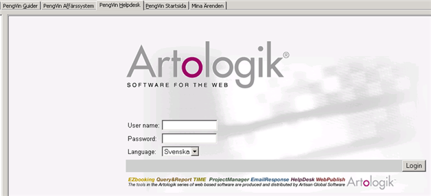 Direktlänk till ärenderapporteringen "Artologik" för PENGVIN.