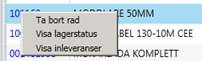 Genom att högerklicka på produktnumret kan man ta bort produkten från kampanjen, titta på lagerstatusen eller inleveranser för en viss produkt.