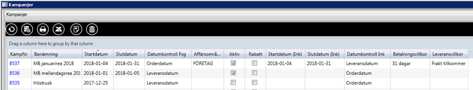 kampanjen hämtas med automatik till order-/inköpsrader om angivet datumintervall