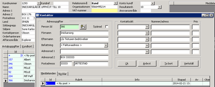 Används om man vill ange en avvikande faktureringsadress på en kund (kontaktperson). Denna befattningskod knyts sedan till en ny kontakt på kunden. Vid fakturering läggs då faktureringsadressen (från kontaktpersonen) ut som adress på fakturor och denna adress kan avvika från kundpostens ordinarie adress. Observera att detta inte gäller på kravbrev. Där skrivs ordinarie kundadressen ut.