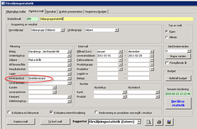 Både försäljnings- och inköpsstatistiken kan plockas fram på en viss leveranskod.