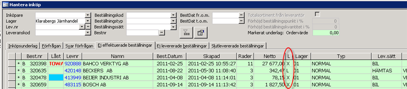 Som inköpsregelverket ser ut idag skapas inte beställningar på transit-/direktrader på en spärrad order, men rader med leveranskod L (lager) kommer med när inköpsunderlag skapas även om ordern är spärrad.