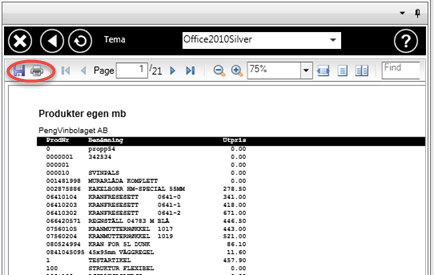 Visar markerad lista i skärmen. Man har här möjlighet att skriva ut listan på skrivare eller spara som pdf.