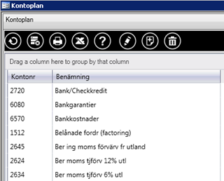 Fältet är kopplat till PENGVINs kontoplan. (Om man använder Fenix läggs detta upp i Fenix.)