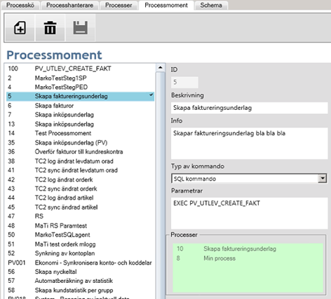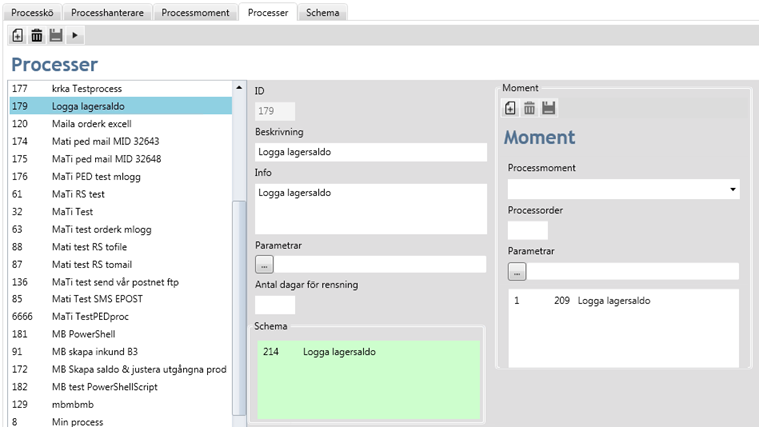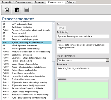 Processordning. Här anges den ordning man vill att de olika processmomenten ska köras.