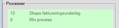Till vänster i dialogen ligger de olika processer som är definierade.