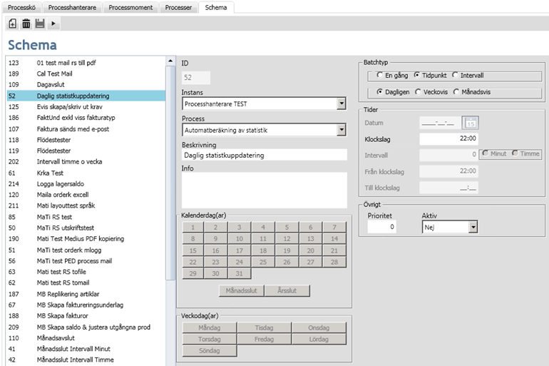 Man har möjlighet att lägga upp en menypunkt, för önskat jobb, som lägger en post till i processkön på samma sätt som om det hade aktiverats av schemaläggningen i processerver.