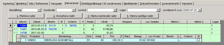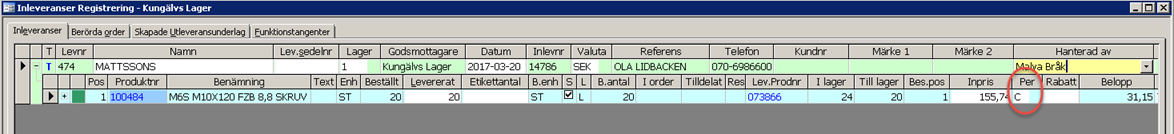 Vid registrering av inleverans visas pris per på varuraden.