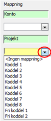 Här anges det standardvärde som ska användas i de fall det saknas konteringsbegrepp enligt det regelverk man valt i listboxen till höger. Se Regelverk nedan.