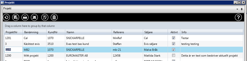 Ange kundnummer om ett visst projekt avser specifik kund.