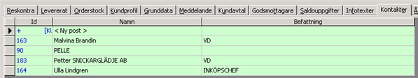 De fält som innehåller data med blå teckenfärg kan leda till andra delar av systemet genom ett dubbelklick. Mailadressen bredvid kundnamnet startar upp mailprogrammet.