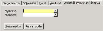 När man lagt de kunder, på vilka man vill rensa bort nycklar, i sitt urval anger man i Nyckeltyp den nyckel man vill ta bort från kunderna. Klicka sedan på Rensa nycklar. Vill man ta bort till ytterligare nyckel gör man om momentet.