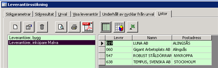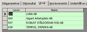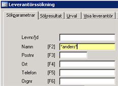 Exempel: *anders* söker efter samtliga leverantörer som har anders i namnet.
