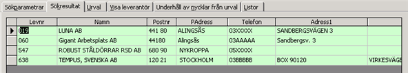 Man har möjlighet att ta fram/dölja kolumner tillfälligt via leverantörssökningen genom att högerklicka och välja "Ta fram kolumner". Där kan man markera/avmarkera aktuella kolumner. Om man vill ändra utseende "för evigt" på leverantörssökningsdialogen (ändra storlek, visning av kolumner i sökresultat osv) gör man det i sökdialogen via Huvudmeny - Stödrutiner - Registersökning - Leverantörssökning.