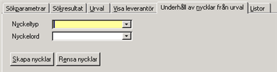 När man lagt de leverantörer man vill tilldela nycklar i sitt urval anger man i Nyckeltyp och ev Nyckelord den nyckel man vill ge leverantörerna. Klicka sedan på Skapa nycklar. Vill man lägga till ytterligare nyckel gör man om momentet.