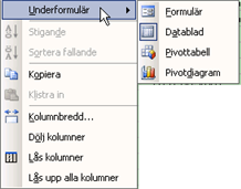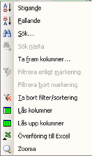 Om man först markerar en kolumn (genom att klicka på kolumnrubriken) och därefter högerklickar får man ytterligare val