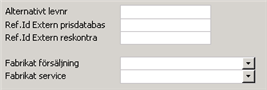 Externt referensnummer. Används vid inläsning av pris- och artikelfiler i sortimentsunderhåll för att identifiera leverantören (det leverantörsnummer som finns angivet i filen som ska läsas in måste matcha det angivna värdet i Ref.Id).